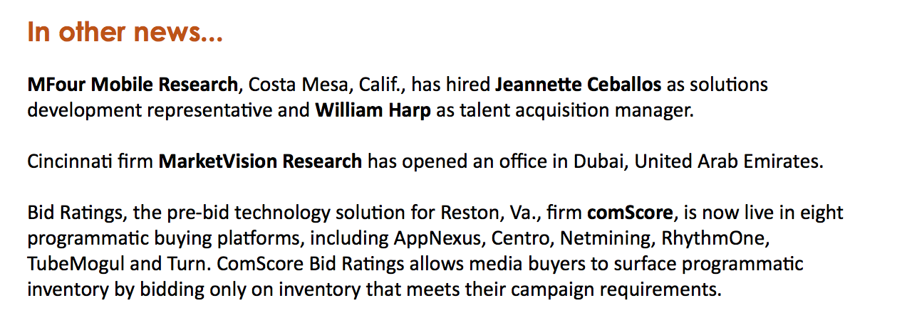 Congrats to our new hires Jeannette Ceballos and William Hart for making it into the market research publication Quirks Daily News Queue.