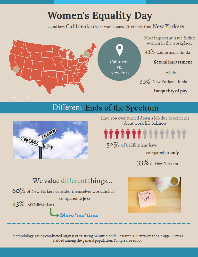 Topics: east coast, inequality of pay, west coast, work life balance, august infographic, MFour Blog, sexual harassment, surveys on the go, Uncategorized, women's equality day