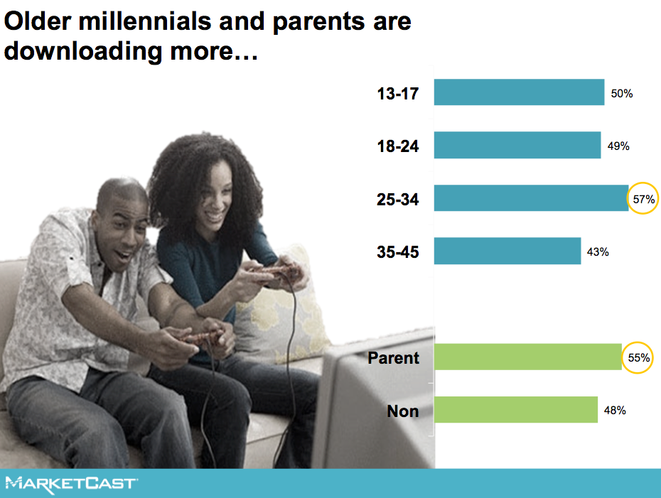 And, although teens might be hooked on digital-everything, older millennials and parents are actually more likely to be downloaders.