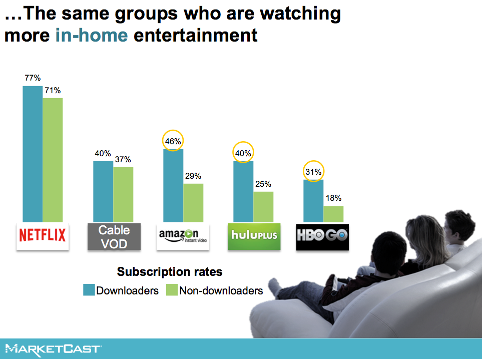All of these console owners tend to have Netflix subscriptions, and they use their cable’s video on demand about equally. But downloaders – along with older millennials and parents – are big on spending their entertainment dollars at home, so not only are they buying games digitally, they’re also subscribing to more digital platforms like Amazon, Hulu, and HBO Go.