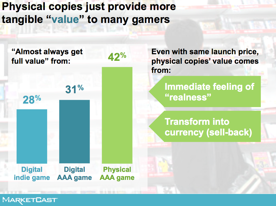 This is true regardless of what group you look at. Males and females, teens and adults all prefer physical copies. So do those who pay to subscribe to premium tiers like Xbox Live Gold and PlayStation Plus. Even downloaders prefer physical copies over digital when it comes down to it.