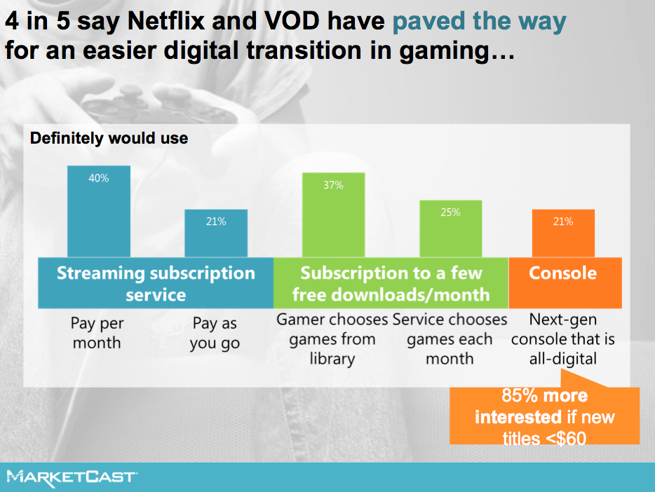 In fact, a monthly subscription is more appealing than a future console with all digital downloads… with the exception of one that makes games cost less overall.