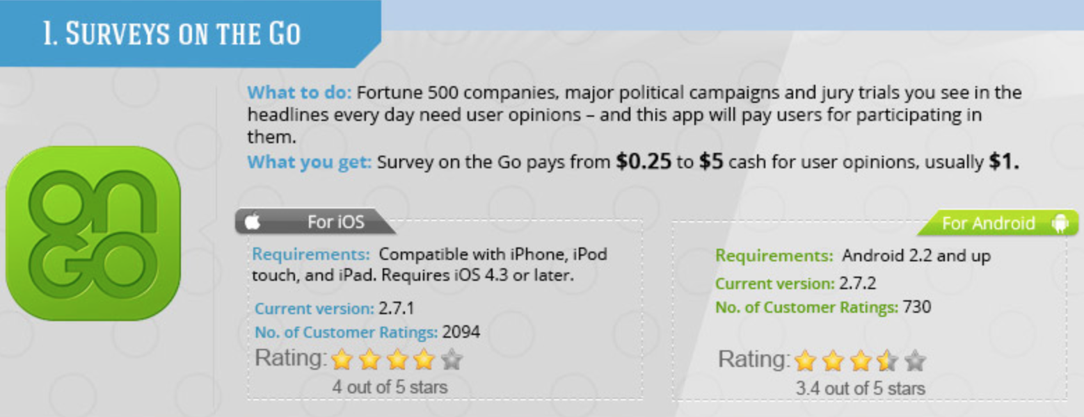The website Digital Synopsis, described as showcasing the best ideas in design, advertising & visual communication and reporting on the latest trends, marketing innovations & design, recently released a list "Make Money with These 15 Smartphone Apps That Pay You for Using Them." Of the 15 apps reviewed, Surveys on the Go ranked #1!